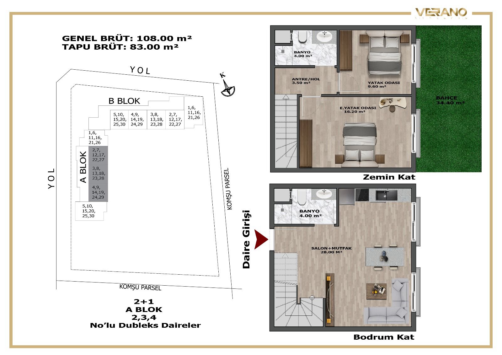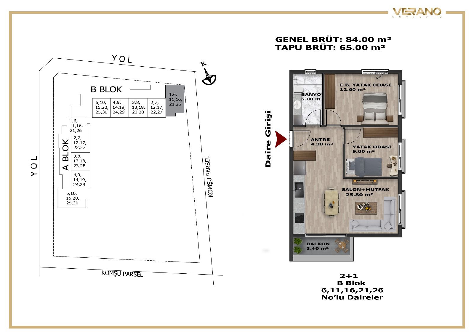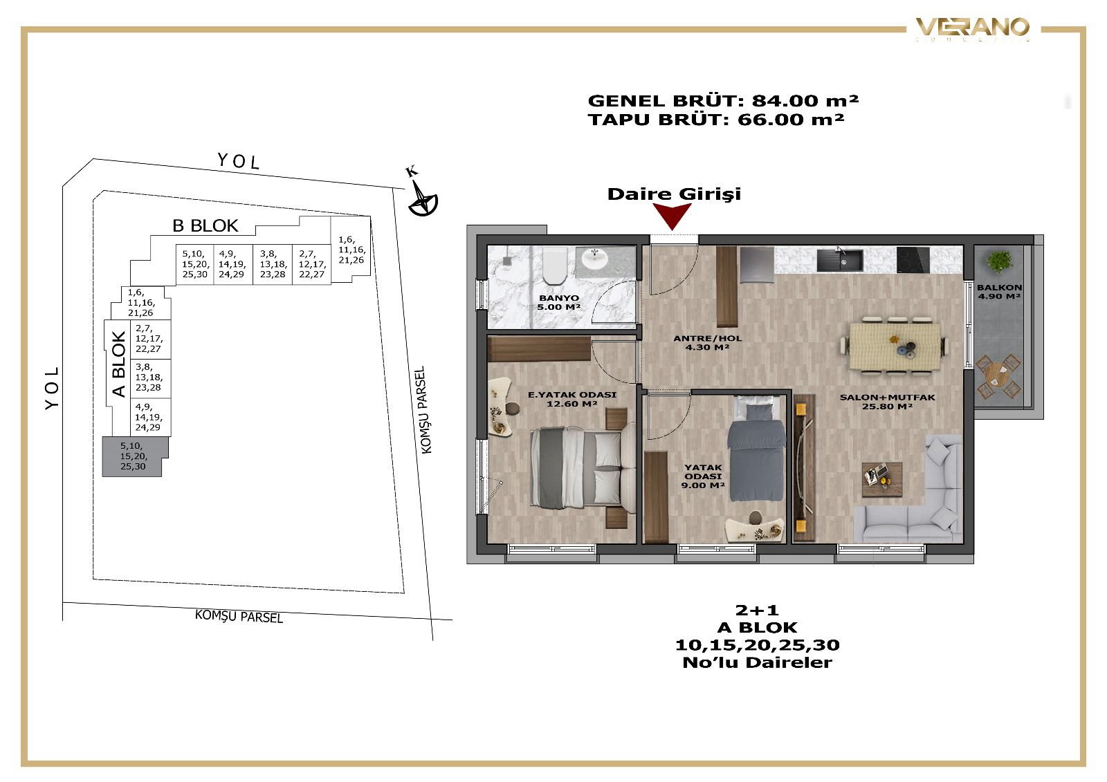 Kaliteli, güvenli site mimarisi ve zengin sosyal donatıları ile Verano Concepto’da şehir merkezinde yaz konsepti yaşayabilirsiniz. 1+1, 2+1, 3+1 daire seçenekleriyle evinizde dingin ve özgür yaşamın tadını çıkartabilir, birikiminizi cazip bir yatırım fırsatına dönüştürebilirsiniz.